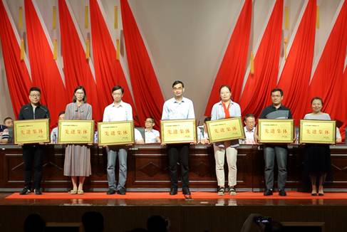 我院党委副书记江滔、学工办主任赵迎华、团委书记李慧分别代表我院上台领取2019年考研先进集体和2018年招生先进集体、就业先进集体奖牌。我院党委书记谢毅敏代表考研工作先进集体发言,介绍了我院考研工作经验。