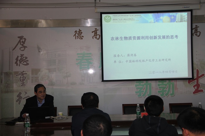 4月26日,为庆祝我校建校六十周年,应我校化学化工学院、科技处、建材研究院的邀请,中国林科院林产化学工业研究所蒋剑春院士、周永红所长、商士斌研究员来我校访问,蒋院士一行参观了分析测评中心,省新型环保重点实验室,化学化工学院科研实验室。下午,蒋剑春院士在北校区教育超市2楼化学化工学院会议室为我校师生作了题为《生物质能源研究技术与产业发展战略思考》的学术报告。学术报告会由校党委常委、副校长王路明教授主持。化工学院院长奚新国、副院长戴勇和化学化工学院、材料学院、建材研究院的师生聆听报告。