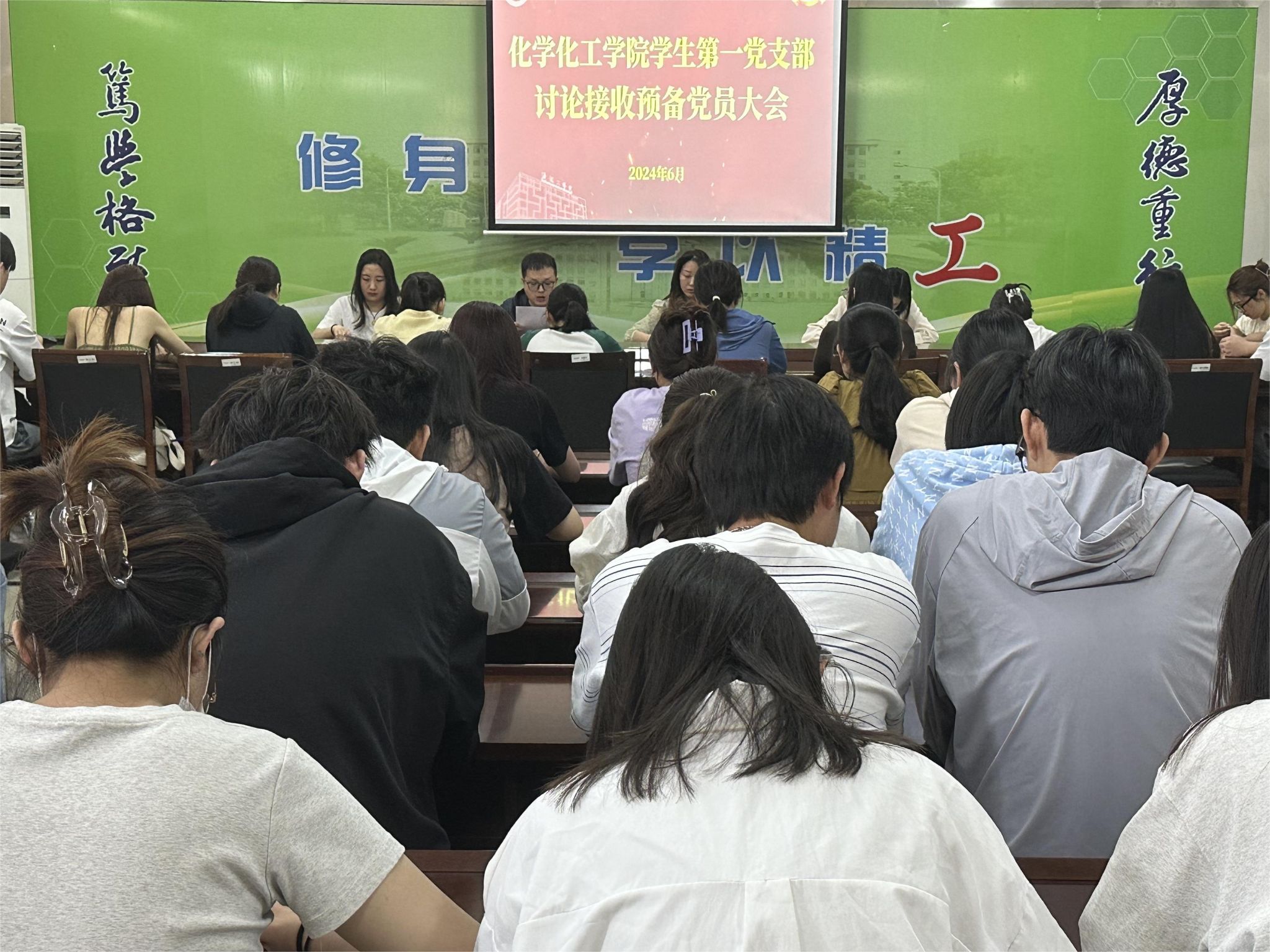 6月3日,化学化工学院学生第一党支部在学院201会议室召开接收预备党员大会,学院学生第一党支部书记唐智主持。