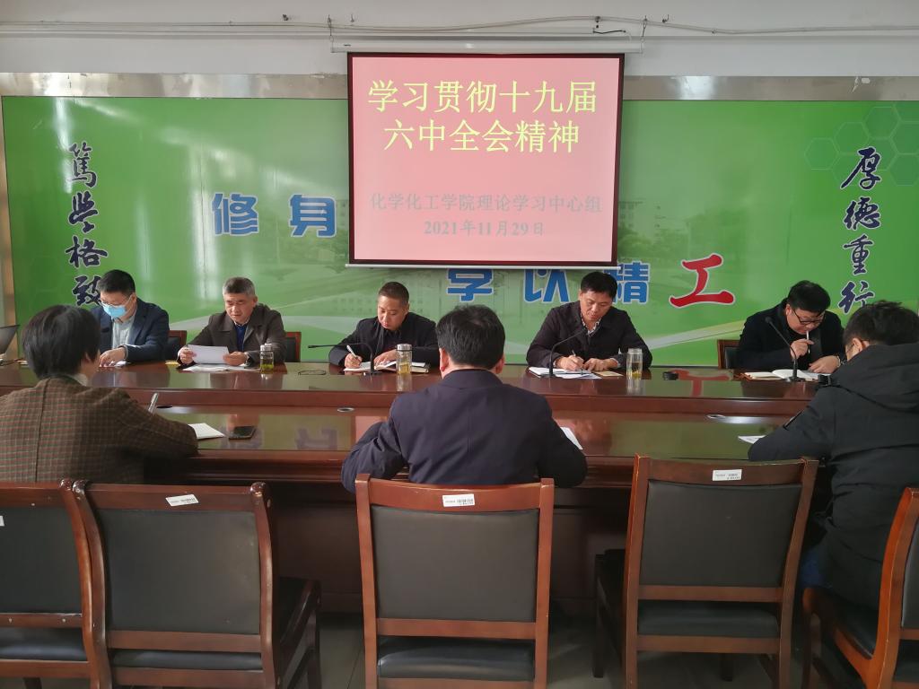 11月29日上午10时,在北校区化工学院201会议室,化学化工学院党委理论学习中心组召开专题学习会,集中学习十九届六中全会精神。学院党委书记高健主持,学院理论中心组全体成员参加。