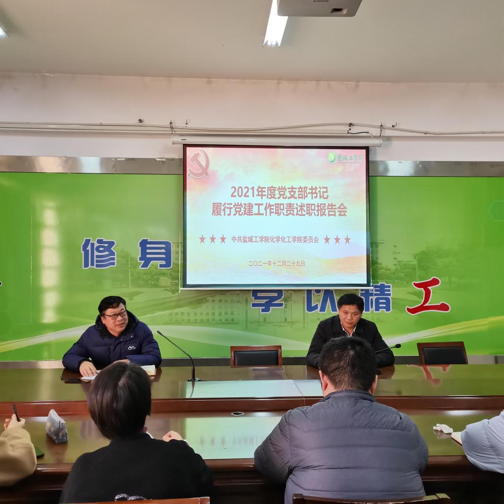 化学化工学院党委根据学校印发的《关于开展2021年二级党组织书记履行党建工作责任述职评议考核工作的通知》要求,于2021年12月29日组织召开了2021年度基层党支部书记履行党建工作责任述职评议考核工作汇报会。学院党委委员参会,学院党委书记高健主持会议。