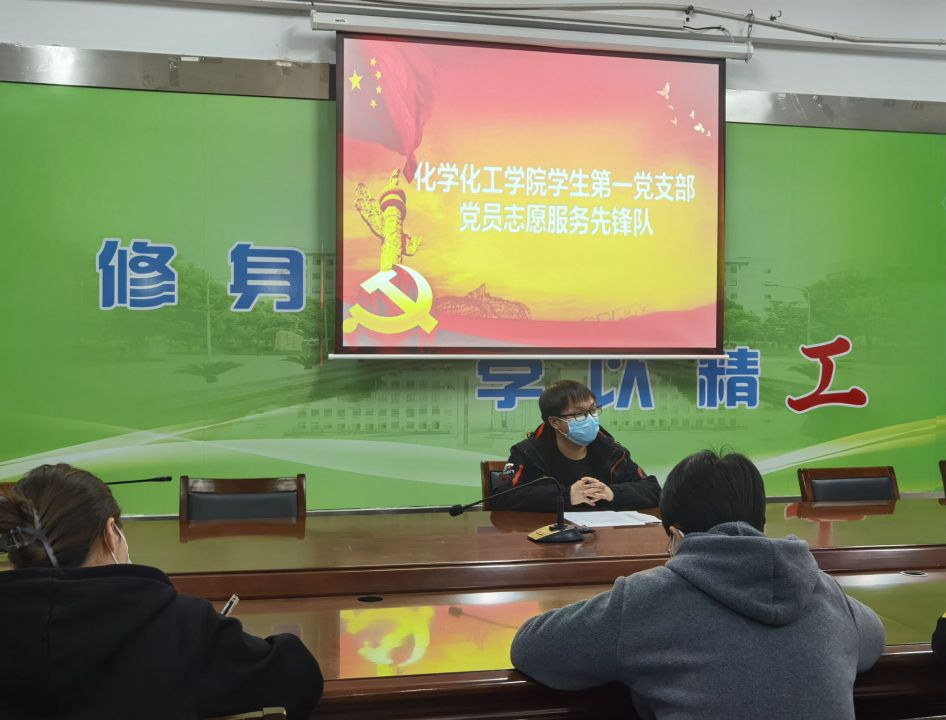 在目前学校疫情防控期间,学生党员更要冲在前面,走在学校疫情防控志愿服务的一线当中,做好学生党员的模范和带头作用。唐智号召学生一支部全体学生党员组建化学化工学院党员志愿服务先锋队,服务于学校疫情防控一线中,党员们纷纷踊跃报名,表示要为学校的疫情防控贡献出学生党员的一份力量。