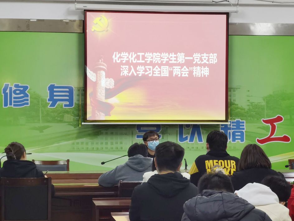 3月30日晚上,化学化工学院学生第一党支部在学院201会议室召开支部党员大会,深入学习全国两会精神,会议由支部书记唐智主持,支部全体党员参加。