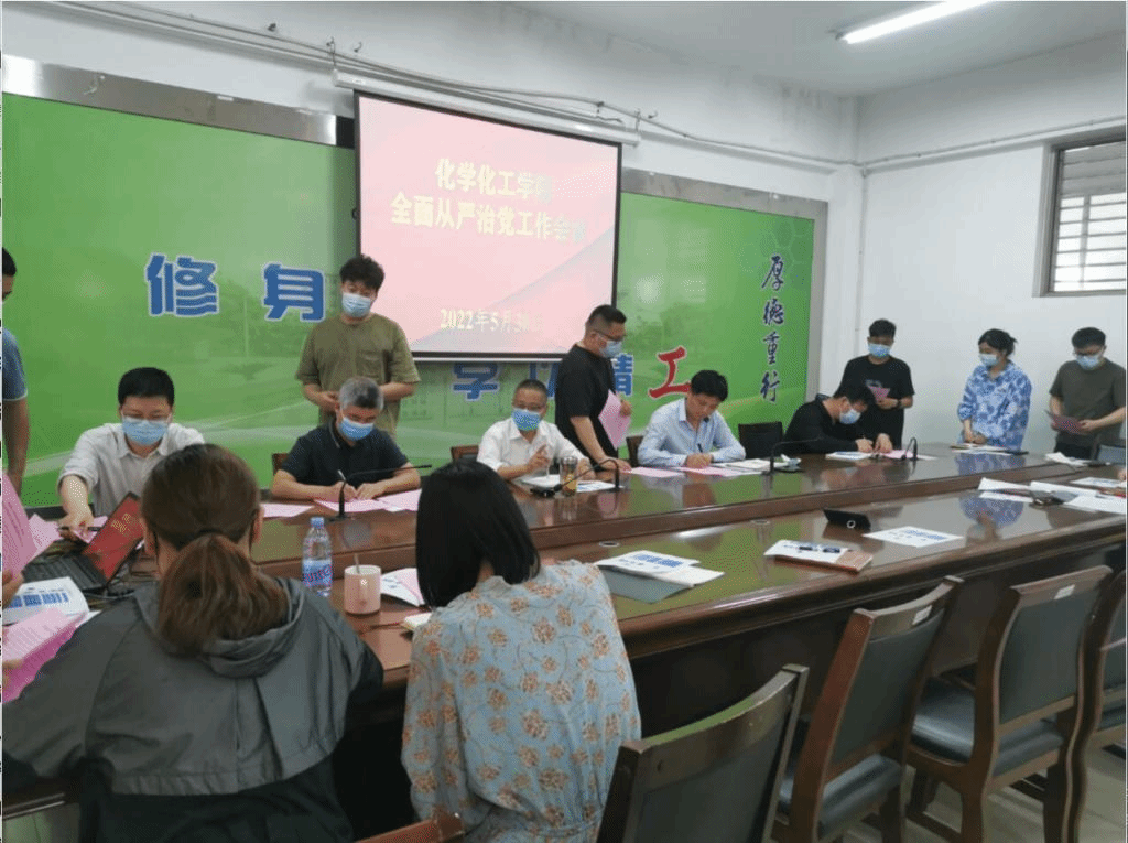 5月30日,化学化工学院组织学院科室负责人、专业系(课程组、实验中心)主任、党支部书记在201会议室召开全面从严治党工作会议。院党委书记高健主持,院党委副书记、纪检委员江滔作了讲话。
