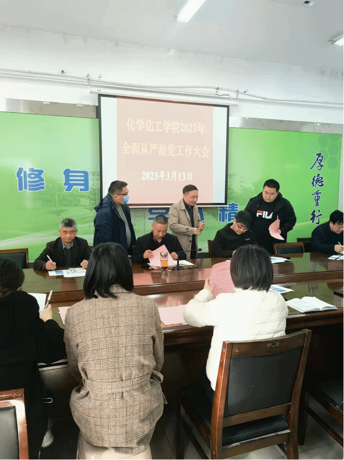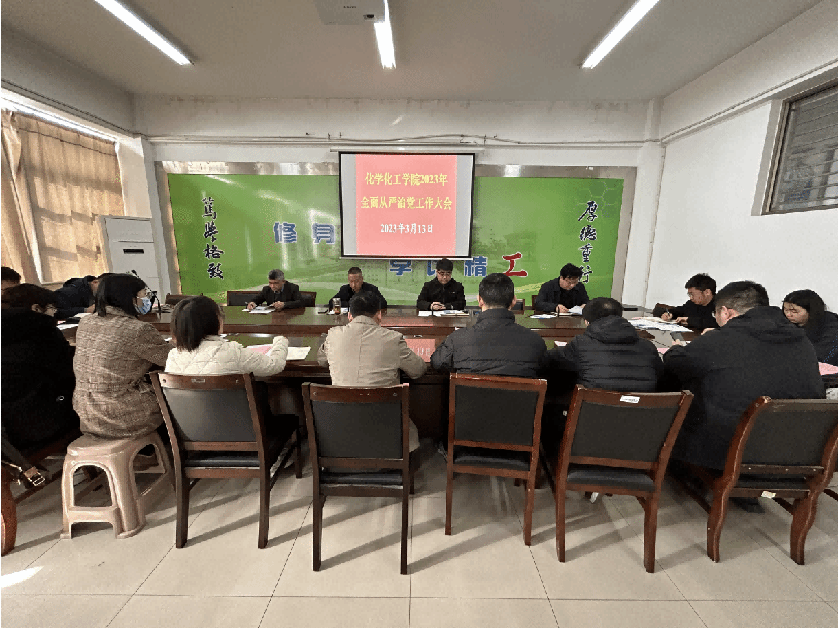 3月13日上午,化学化工学院在学院201会议室召开全面从严治党工作会议。学院全体科级以上干部、专业系(教研部、实验中心)主任、党支部书记出席会议。学院党委副书记庞辉主持会议。