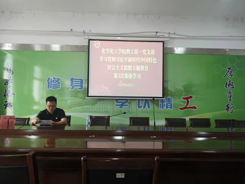 6月7日下午,化学化工学院教工第一党支部在学院201会议室召开学习贯彻习近平新时代中国特色社会主义思想主题教育第3次集体学习会议。