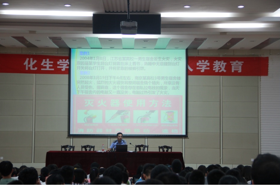 9月8日下午2:30点,化生学院在东校区化工楼报告厅召开2012级新生学籍管理规定教育讲座,邀请教务处副处长孙爱东老师作报告。会上,孙老师详细讲解了我校学籍管理规定、学士学位授予条例,重点解释了学生考试违纪处理暂行规定以及学生素质拓展学分认定办法等有关规定。 9月8日下午4:00,化生学院在东校区五四报告厅召开2012级新生“一日常规管理”讲座。学院学生科副科长邢千里首先对学校基本情况作了简单介绍,详细阐述了大学基本构成与教学理念,强调大学生应注重时间运筹与社会交流,早日形成自己的学业生涯规划。 9月9日下午2:30,化生学院邀请校图书馆读者服务部主任、副研究员周华老师为2013级新生们举行图书馆入馆教育活动。周老师介绍了学校图书馆的概况,包括馆藏分布、部门介绍、开放时间、规章制度、图书借阅及归还流程、文献资源、电子及网络资源以及数据库等中的各种学术资源。他鼓励同学们在四年的大学生涯中要多读书,读好书,养成良好的读书习惯,积累丰富的知识,运用自己的所学,为社会创造更多的财富。通过此次教育活动,使2013级新生们充分地了解到了两个校区的图书馆的各种情况,也使同学们了解到以后的学习过程中,图书馆为他们提供了丰富的资源。 9月9日下午4点,化生学院邀请学校保卫处姚杰副处长在迎宾大道校区化工楼报告厅为2013级新生进行法制与安全教育专题讲座。重点从人身安全、财物安全和交通安全等方面讲述了大学生应加强防范意识,提醒大学生要做好法制和安全防范意识。 化生学院通过开展一系列的教育活动,帮助2013级的新生能够尽快融入大学生活,为今后四年的大学学习做好充分准备。