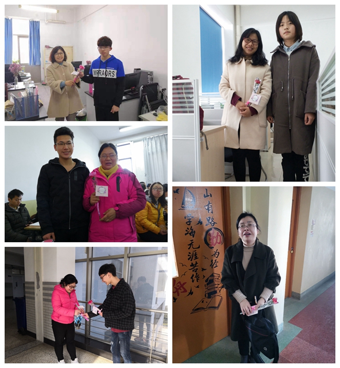 初春的清晨已经褪去寒气,盐城工学院校园更是洋溢着温暖的气息,特别是化工学院女教职工们心理充满了甜蜜和幸福。为庆祝第109个三八国际妇女节,化工学院学生自发组织了“一枝鲜花送老师,一张卡片表祝福”活动,小小心意表达对学院女老师的感谢和祝福。 3月8日早晨,化工学院学生干部自发在学院实验楼、教学楼、办公室手捧鲜花为广大女老师们送去节日的祝福:“谢谢老师辛勤的付出,节日快乐,老师您辛苦了”。一句简单的问候一张温馨的卡片,让收到祝福的女老师们倍感幸福。“一大早过来上课,看到学生拿着花笑盈盈地站在门口,确实是很大的惊喜,特别感动甚至有些骄傲,谢谢可爱的学生们”化学工程系系主任吴俊老师很动情地说。“我们也很开心在这样一个特殊的节日给女老师送去祝福和感谢,看到平时严肃的老师们笑得那么开心我们感觉更幸福”,活动的策划者徐耀说。收到祝福的女老师们纷纷表示:在这样特殊的日子里,不仅有鲜花、有祝福,学生的一句“您辛苦了”更是觉得为学生操劳再苦再累也值得。美丽的鲜花和老师们的笑脸融汇在一起,是今天校园里最美的风景。 学院党委书记谢毅敏说:学院近年来一直重视对一线教师的人文关怀,利用这样特殊的节日为老师送去祝福,表达化院学子对女老师的感恩情怀,这些活动正是学院一直以来加以引导的尊师重道,让老师有归属感和幸福感。 手上有花,肩上有责,心中有梦,学院女老师表示将会继续发扬“巾帼不让须眉”之势,为学院的发展贡献自己力量,谱写学院新的篇章。