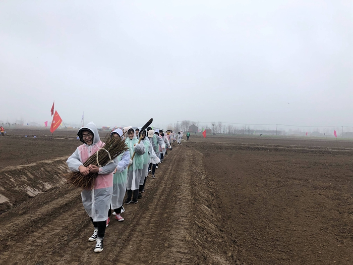 3月10日,在我国第41个植树节到来之际,化学化工学院、机械优集学院组织大学生志愿者来到盐城市步丰镇酵亲缘生态农业园开展“我和春天有个约会”植树节活动。 上午9点,志愿者们顺利到达步凤镇酵亲缘生态农业基地,基地负责人孙万林给所有的志愿者进行了植树细节的知识普及,实践指导后,志愿者们分为三组,拿上铁锹、背着树苗、拎起水桶,挖坑、松土、放苗、培土、踩实、浇水,300多株黄桃树树苗在各位志愿者通力配合之下全部种植。整个植树活动,志愿者们辛勤耕作,不顾脏乱,男生奋力挖土,女生也不甘落后,踩土、填土、浇水等工作也完成的干净利落。“坑再挖深点,把周围的泥土挖松软了树苗还能长得结实。”、“踩完泥土要把树苗向上拔一拔,要让根向下长。”、“浇水不要浇在树根处,浇在树苗周围,别把泥土冲走了”……每组的组长牢记农民伯伯们的指导,不断提醒志愿者们,保证每一株树苗的茁壮成长。 中午12点左右,雨轩斋免费提供绿色无公害四菜一汤,疲惫的志愿者们无比享受着美味健康的午餐,每一张脸上都是幸福满足的表情。餐桌上,志愿者进行活动分享,真诚地表述自己的感受。“植树节自小而来耳熟能详,但今天却是我第一次参与到植树活动中来,在来时的路上我觉得种树无非挖个坑填上再浇水等等,而这次亲自动手才知道每一步都要灌注自己的耐心细心,生活处处有知识。”志愿者毕晨杰发言道。志愿者们各抒己见,每个人都觉得收获满满。 据悉,果树种植后,志愿者们将以“认领”的方式参与果树的管理,为自己种植的果树施肥修剪枝叶,等到果实成熟,志愿者们可以和亲朋好友一起采摘。通过植树节活动,提升了所有志愿者的爱绿建绿护绿意识,形成生态文明共建共享的良好氛围,为当地的新农村建设贡献自己的力量。
