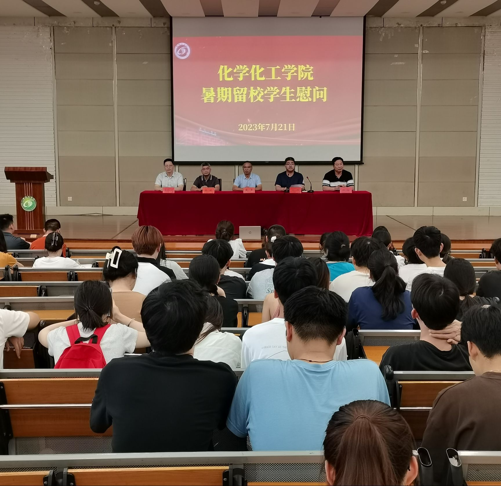 为帮助学院暑期留校考研学子坚定考研目标、缓解备考压力、增强必胜信心,7月21日下午,化学化工学院在北校区化工楼报告厅开展2023年暑期留校学生慰问活动。活动由学院党委副书记江滔主持。学院领导班子成员、学工办负责人、2020级专兼职辅导员及全体留校考研学生参加。