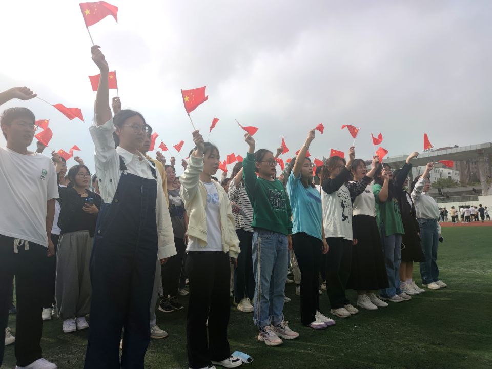 共唱爱国诗歌,弘扬爱国情怀。观看升旗直播后,全体人员移步操场,由院团委学生副书记张艺涵带领大家合唱《我和我的祖国》,“我和我的祖国,一刻也不能分割……” ,同学们挥舞着手中鲜艳的五星红旗,歌声回荡,令人心潮澎湃,火红的国旗与张张笑脸交织在一起,汇成一幅动人的画面,表达对伟大祖国的热爱与祝福。合唱结束后大家用最诚挚的祝福给祖国献礼,祝愿我们的祖国更加美好。丁洁同学感慨道“神州大地繁花似锦,祖国长空乐曲如潮,在这美好日子里,我们最真诚的祝福祖国,繁荣昌盛!”