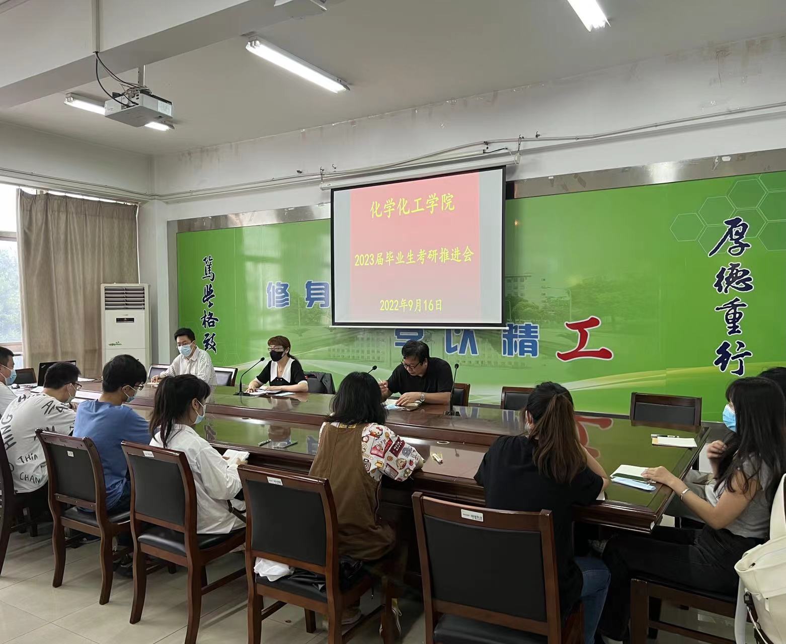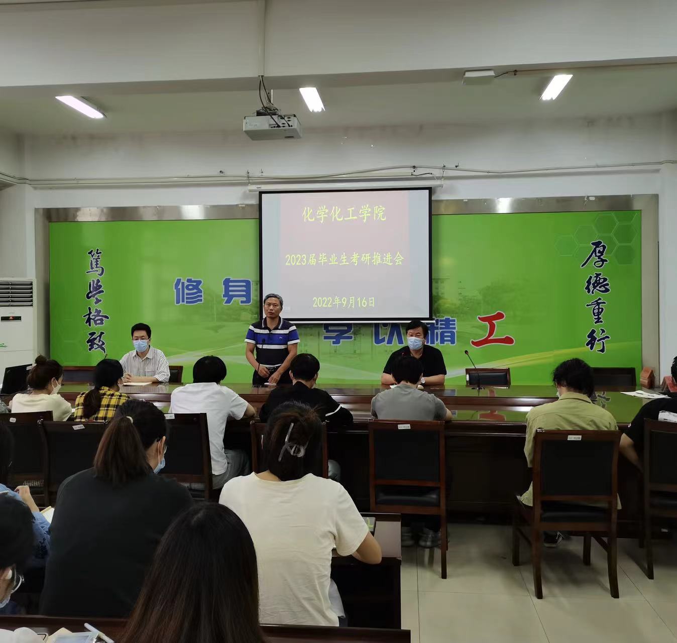 为进一步推进学院学生考研工作,9月16日下午,化学化工学院在学院201会议室开展2023届毕业生考研推进会。应用化学系主任张蓓蓓、制药工程系教授孙国香分别应邀为考研学生进行目标院校、复习方法、心理调适等方面进行指导。推进会由学院党委副书记江滔主持。
