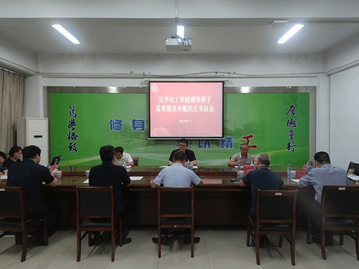 7月4日下午,化学化工学院在北校区化工学院201会议室召开巡察整改专题民主生活会。校党委常委、副校长张勤芳出席会议并作点评讲话,纪委机关审查调查处处长陈雪海和党委组织部组织科科长王源参会督导,会议由化学化工学院党委书记庞辉主持,学院领导班子、党委委员参加。