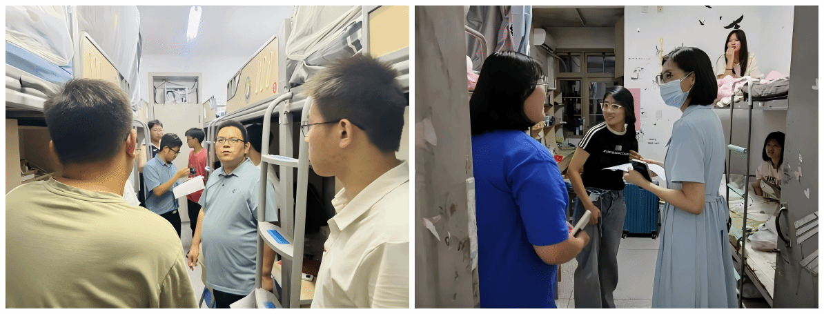 7日晚,邵景玲、学生工作办公室主任李慧、团委副书记带领全体专兼职辅导员深入新生宿舍,倾听学生需求,进行亲切交流。