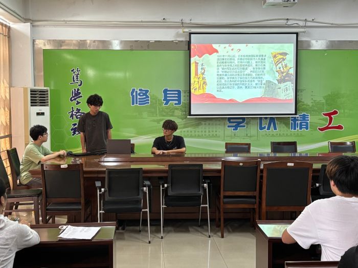 9月18日下午,学院学团联合会在“化心筑梦”一站式学生社区举办“铭记九一八,吾辈当自强”主题团课。通过学生干部的讲述,大家共同回顾了“九一八”事变的历史进程。活动中,同学们深切体会到那个战火连天的时代,感受到前辈们为了国家英勇斗争的坚定信念与顽强意志。同学们纷纷表示,他们将永远缅怀那些为国捐躯的英烈,并珍惜来之不易的和平环境,刻苦学习、积极进取,立志为中华民族的伟大复兴贡献自己的一份力量。