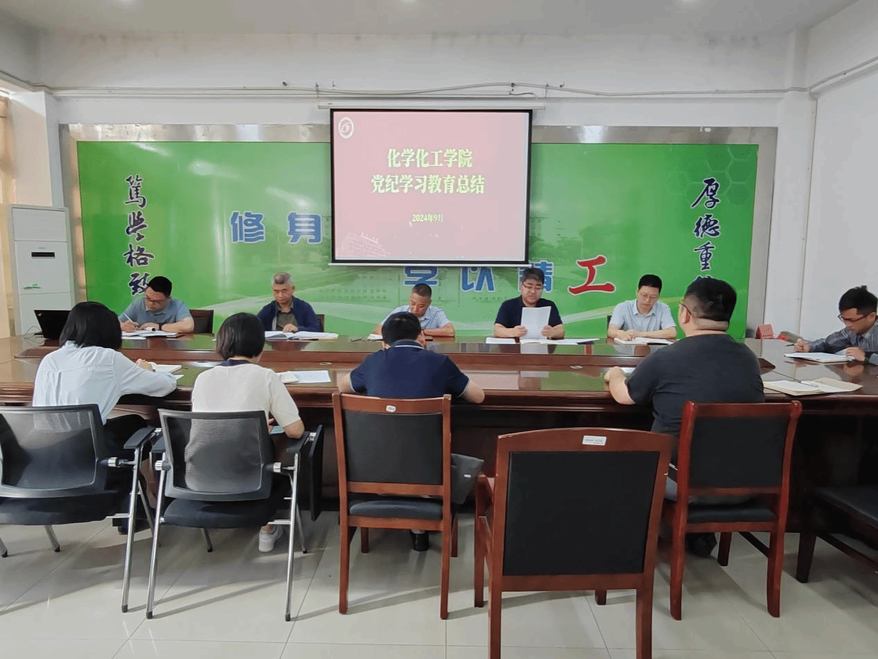 为全面总结学院党纪学习教育成果,进一步推进党纪学习教育常态化、长效化,9月23日上午,化学化工学院在学院201会议室召开党纪学习教育总结会。学院党委书记庞辉主持,学院党委全体成员和班子成员参加。