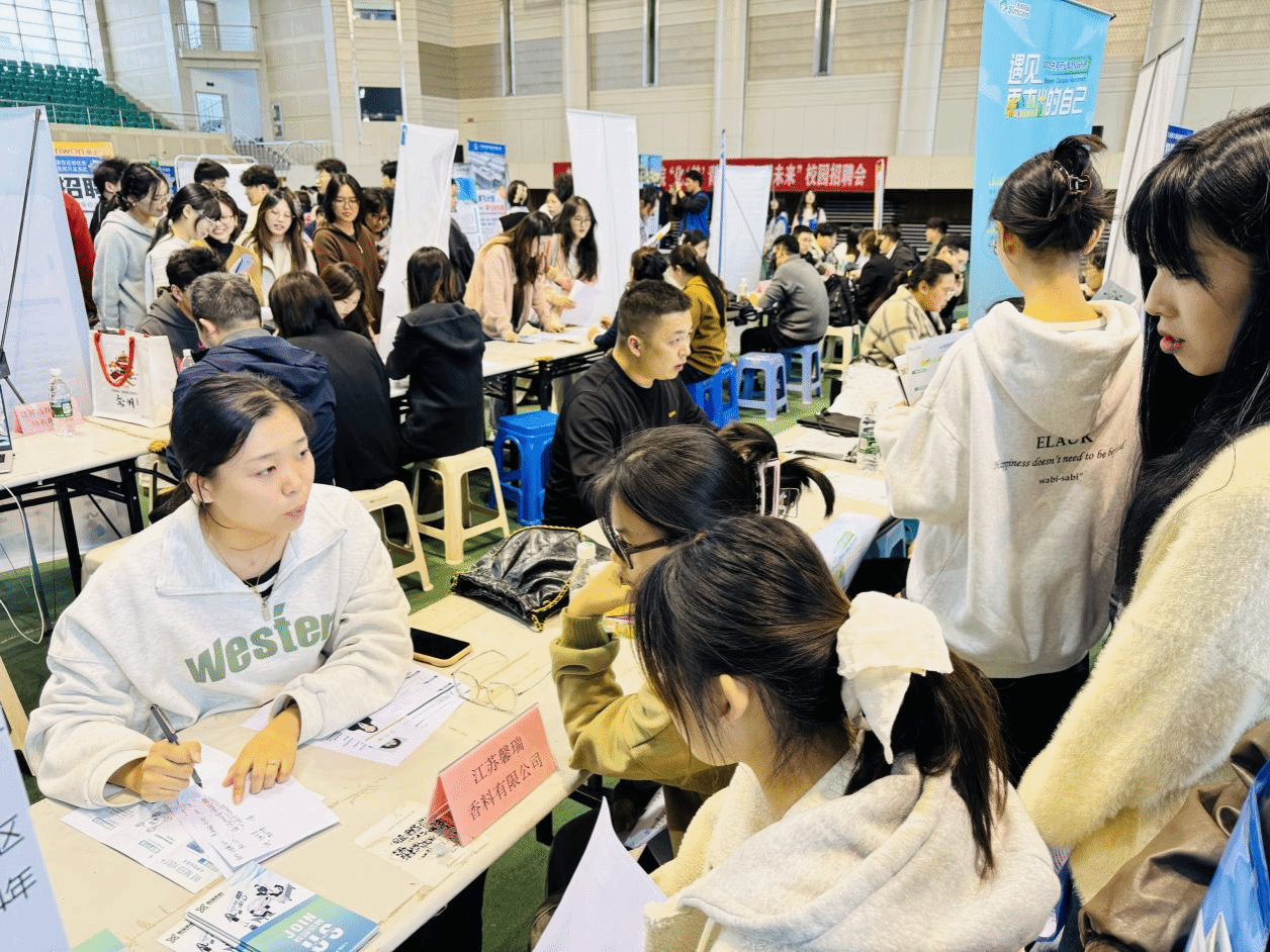 本次招聘会以“‘化’梦青春 ‘职’引未来”为主题,汇聚了晶瑞电子材料股份有限公司、南通江山农药化工股份有限公司、双乐颜料股份有限公司等52家用人单位,包含多家国企、上市公司,涉及化学、石油化工、生物医药、新材料及环保等多个行业,提供1500余个就业岗位。吸引化工、海生、材料、环境等学院1000多名应届本科生和研究生到场求职应聘。在招聘会现场,同学们与用人单位面对面交流、积极投递个人简历,咨询求职相关的岗位要求、薪资待遇、职业发展等问题。据统计,招聘方共收到简历近2000份,初步达成就业意向300余人。部分用人单位进行了专场宣讲及现场面试。
