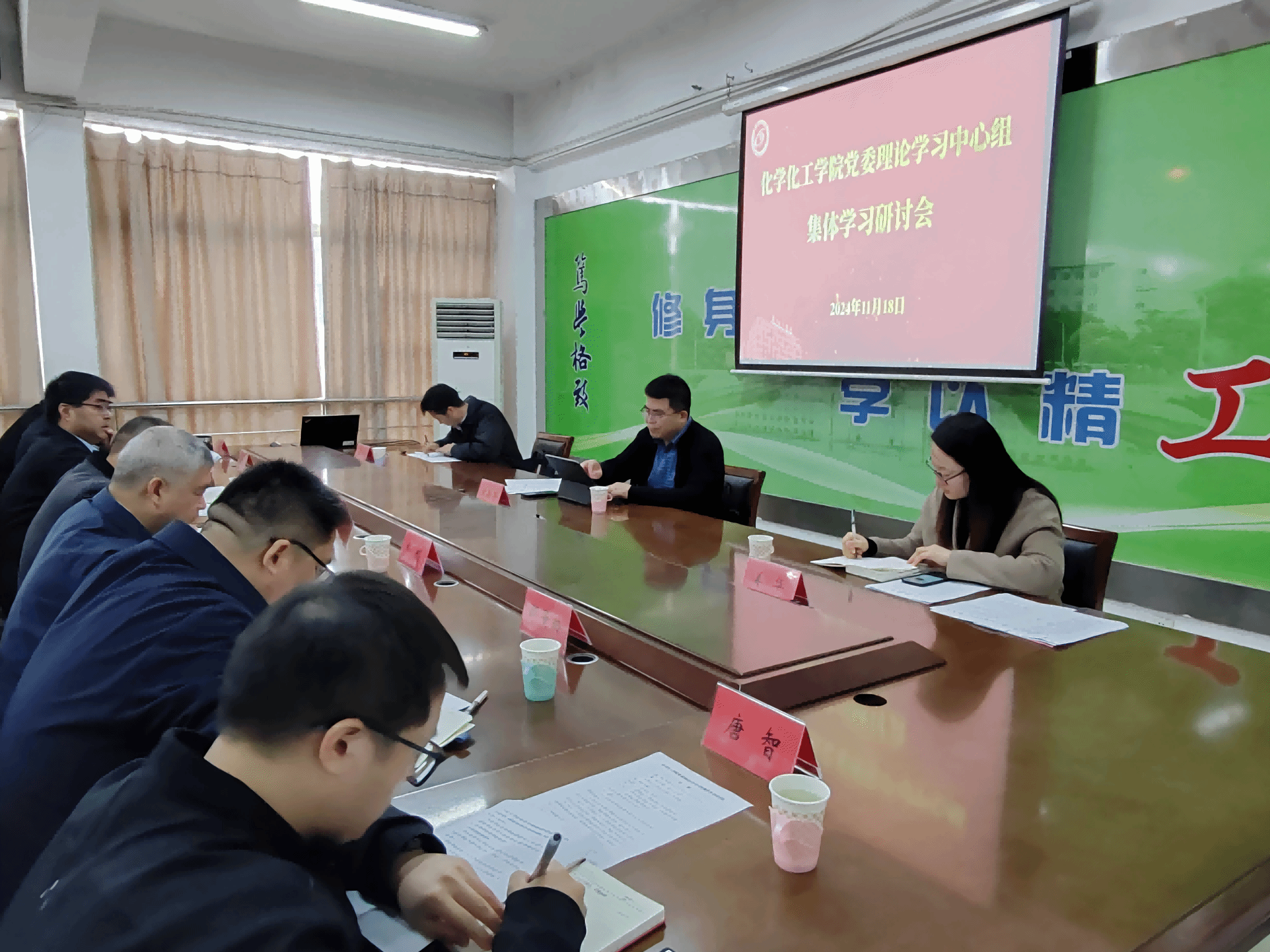 11月18日上午,化学化工学院党委理论学习中心组在北校区学院201会议室召开集体学习研讨会。校党委第七巡学旁听组组长、党委常委、副校长张勤芳,校党委第七巡学旁听组成员、党委研究生工作部副部长姜华,校党委第七巡学旁听组秘书李科旁听指导。化学化工学院党委书记庞辉主持,学院党委理论学习中心组全体成员参加。
