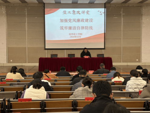 为全面贯彻落实党的二十届三中全会精神,进一步加强教师的廉洁自律意识,切实筑牢拒腐防变的思想防线,12月4日下午,化学化工学院在化工楼报告厅开展“盐工廉政讲堂”学习教育活动。学院党委书记庞辉主持,党委副书记、纪检委员邵景玲主讲,全体教职工参加。