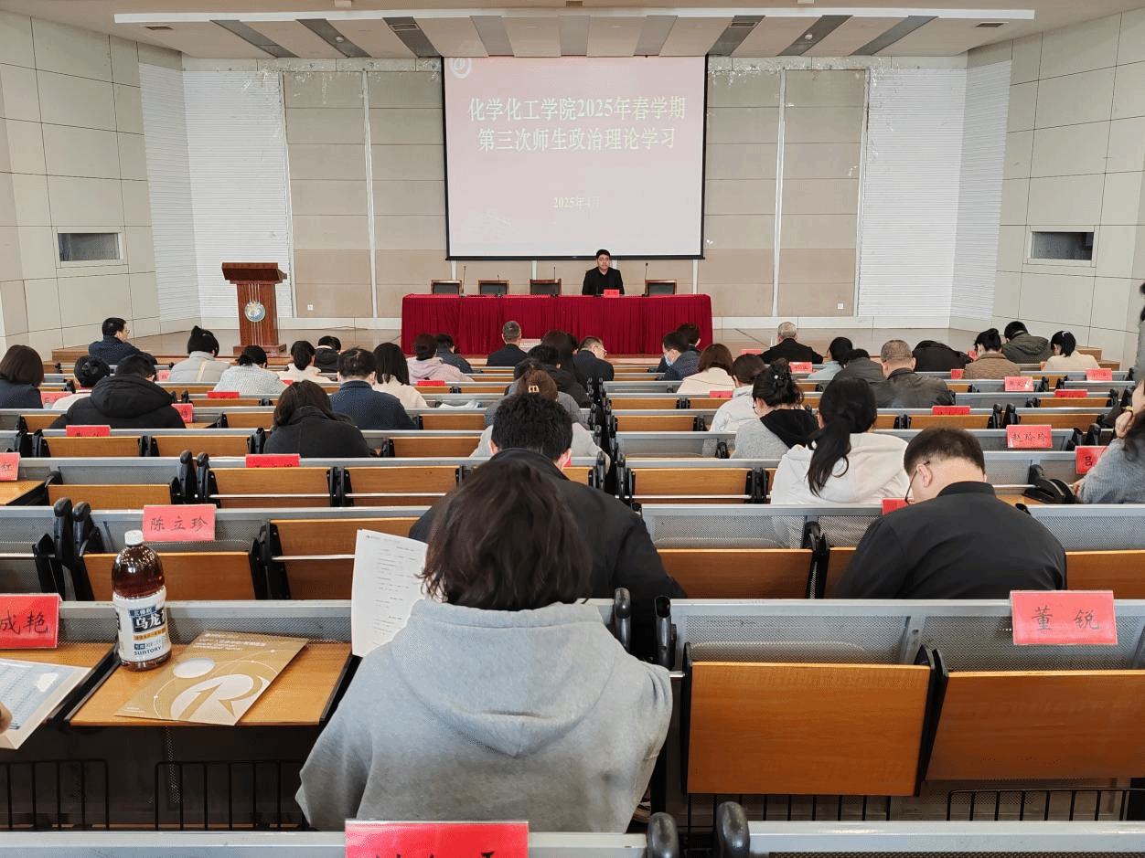 4月2日下午,化学化工学院在北校区化工楼报告厅组织开展2025年春学期第三次师生政治理论学习。学院党委书记庞辉主持,学院全体教职工、学生党员和学生干部代表参加。