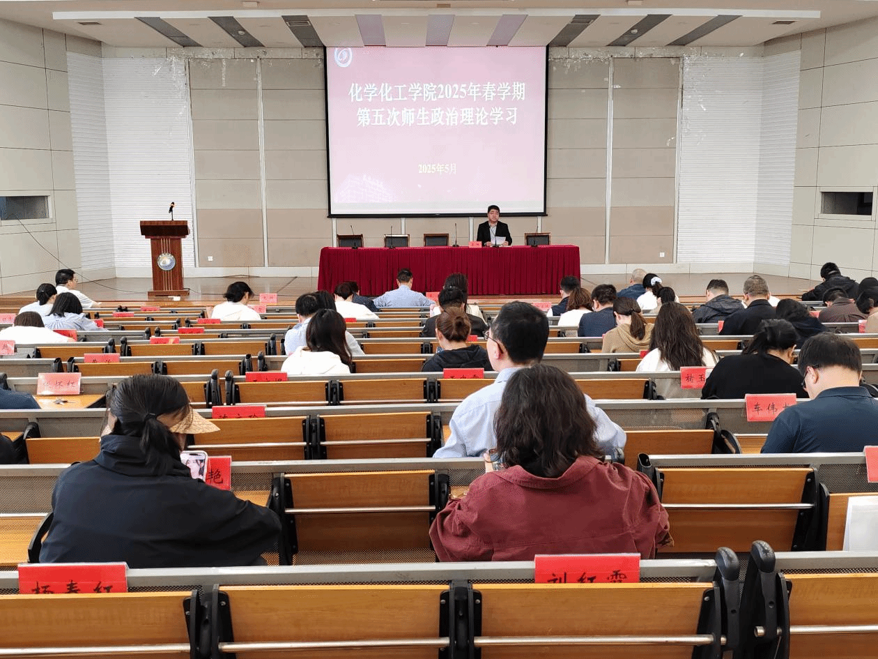 5月7日下午,化学化工学院在北校区化工楼报告厅组织开展2025年春学期第五次师生政治理论学习。学院党委书记庞辉主持,学院全体教职工、学生党员和学生干部代表参加。