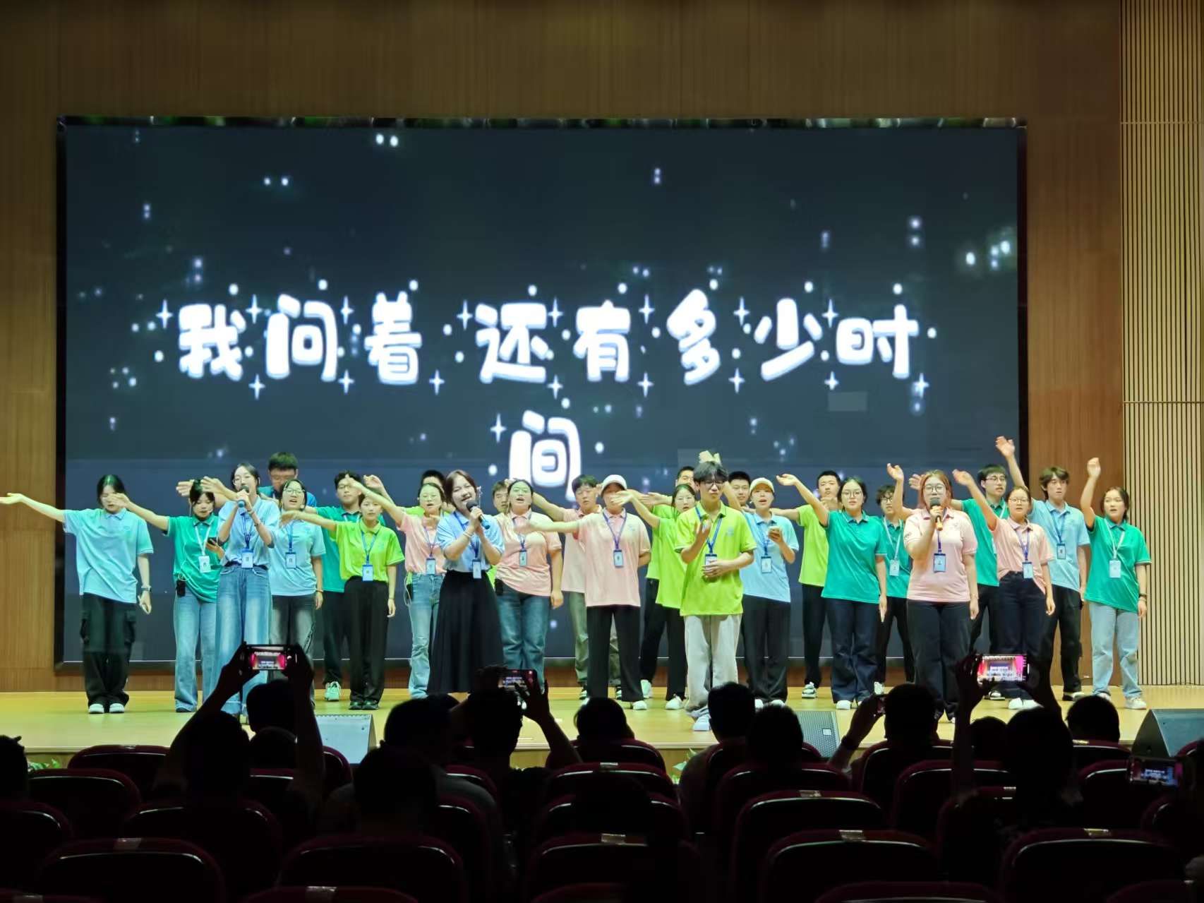 随后,精彩纷呈的文艺节目轮番上演。歌曲串烧《鲜花+山海》以动感旋律点燃全场热情;舞蹈《日不落》用轻快舞步展现青春活力;情景剧《童游益学 快乐一夏》带领观众走进童趣盎然的夏日课堂;幽默朗诵《大学生干饭诵》与小品《自食其果》妙趣横生,引发阵阵欢笑;舞蹈《Gee》与歌曲《你从未离去》传递出蓬勃朝气与温暖力量。最终,大合唱及手语操《我们的明天》以悠扬歌声与整齐动作收尾,将对未来的美好憧憬定格在舞台中央。