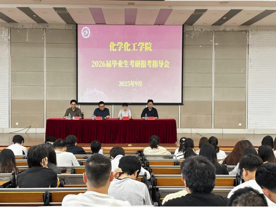 为切实做好2026届本科毕业生考研指导与服务工作,进一步提升人才培养质量,激发学生奋力考研的积极性,鼓舞学生将考研坚持到底的决心,9月26日上午,化学化工学院联合“化心筑梦”一站式社区在化工楼报告厅召开2026届考研报考指导会。学院党委副书记邵景玲主持会议,学工办副主任杨立远、专业系主任张蓓蓓、毕业班辅导员及2022级考研学生参加会议。