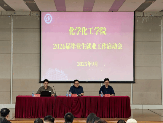 为帮助毕业生认清当前就业形势,明确学院就业支持举措,9月26日,化学化工学院联合“化心筑梦”一站式社区召开 2026 届毕业生就业工作启动会,学院党委副书记邵景玲主持会议,学工办副主任杨立远、全体毕业班辅导员及全体2026 届毕业生参会。