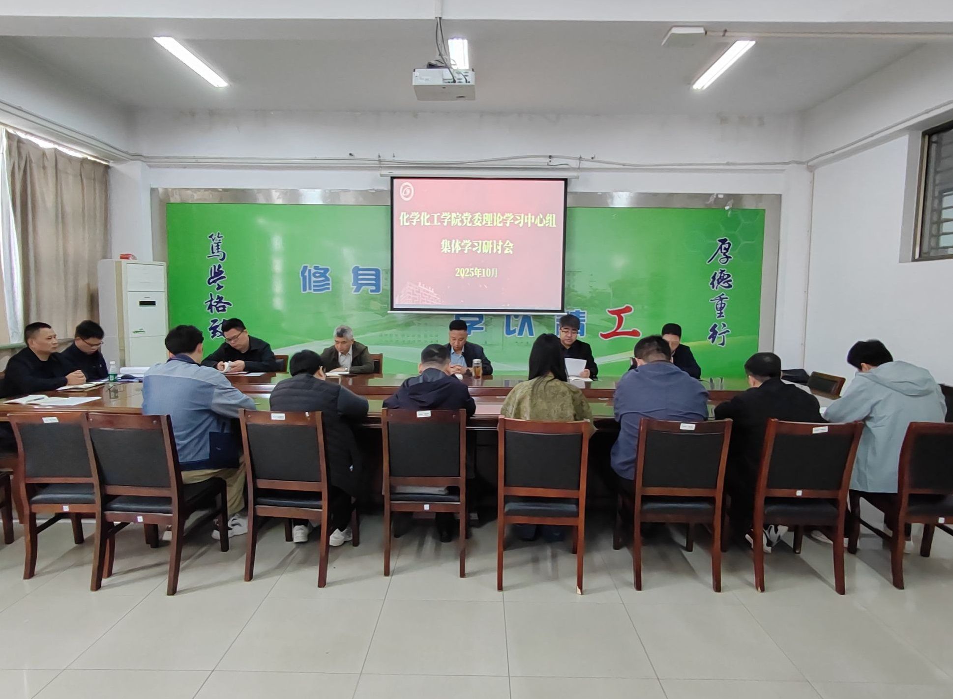10月20日上午,化学化工学院在北校区化工学院201会议室召开党委理论学习中心组2025年秋学期第二次集体学习研讨会。学院党委书记庞辉主持,中心组全体成员参加。