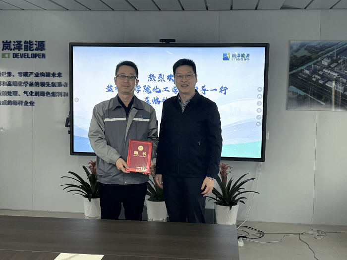 为深入推进校企合作,深化产教融合,实现人才培养与企业需求的精准对接,2025年10月23日下午,化工学院院长戴勇、副院长祁刚、副院长李红波及学科办公室主任兼党政办公室主任孙开涌一行赴江苏岚泽能源科技有限公司开展校企合作交流。江苏岚泽能源科技有限公司上海总部副总裁郭峥嵘、大丰公司副总经理张晓强、人事经理邹帅等予以热情接待。