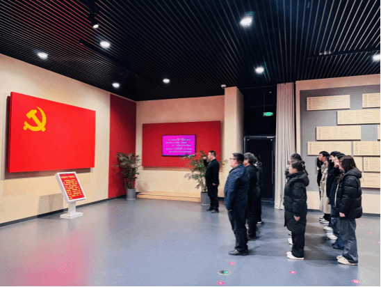 参观结束后,教工第一党支部书记谷峰带领学院党委委员和学生预备党员,一起来到新四军纪念馆宣誓厅,面向党旗,举起右拳,重温入党誓词。