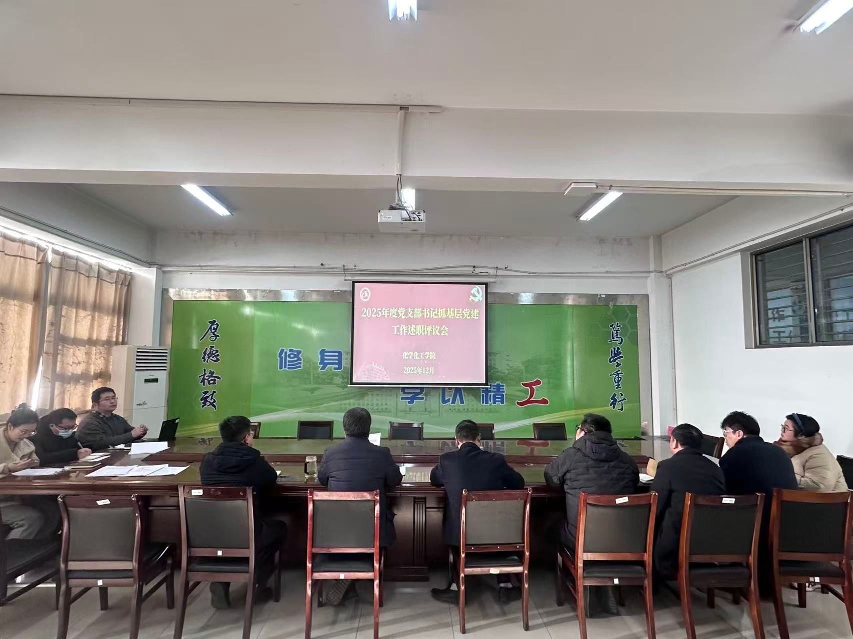 为深入贯彻新时代党的建设总要求,压紧压实基层党建工作责任,12月22日上午,化学化工学院2025年度党支部书记抓基层党建工作述职评议会在北校区化工学院201会议室召开。会议由学院党委书记庞辉主持,学院党委委员、各党支部书记参会。