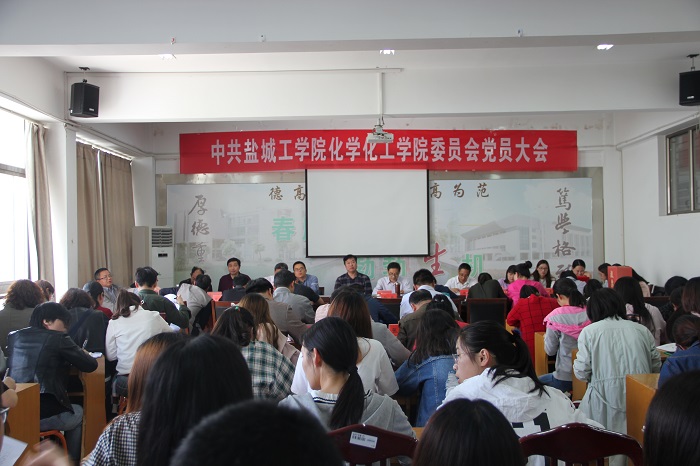 学院党委书记谢毅敏代表第一届中共盐城工学院化学化工学院委员会向大会作了题为《求真务实,开拓进取,加强和改进党的建设和思想政治工作》的工作报告。学院党委委员、副院长戴勇宣读学校党委组织部《关于同意中共盐城工学院化学化工学院委员会召开换届选举党员大会的批复》,学院党委委员、学工办主任赵迎华同志宣读《第二届中共盐城工学院化学化工学院委员会选举办法(草案)》,学院党政办公室主任邵景玲同志介绍委员候选人的产生过程和候选人的基本情况,学院团委书记李慧同志宣读《第二届中共盐城工学院化学化工学院委员会选举大会监票人、计票人名单(草案)》。