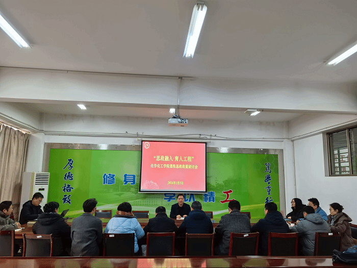 为深入贯彻落实党的教育方针,扎实推进立德树人根本任务,切实将价值引领、知识传授与能力培养有机融合于本科教育教学全过程,化学化工学院于1月5日在北校区教育超市二楼201会议室召开主题为“思政融入·育人工程”的课程思政政策学习研讨会。会议由学院副院长李红波主持,各专业系(部、实验中心)主任、教科研办公室主任及部分教师代表出席会议。