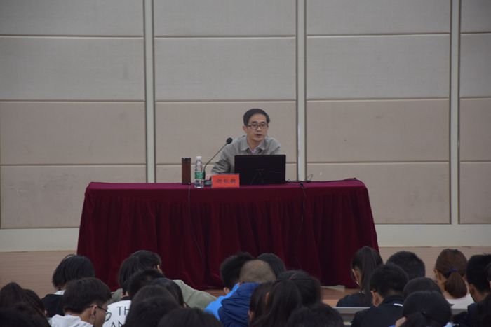 11月3日晚,在北校区化工楼报告厅,化学化工学院党委书记谢毅敏为学院新生做了题为“学习十九大精神,争做新时代先锋”辅导报告,化工学院新生辅导员以及全体2017级新生参加。 谢毅敏围绕学习十九大精神、掌握新党章要点、争做新时代先锋三个方面展开。首先,他向学生详细解读了十九大“不忘初心,高举中国特色社会主义伟大旗帜,决胜全面建成小康社会”的主题、阐述了十九大的重大意义、描述了“新时代”的历史定位及“两个一百年”奋斗目标,阐述了“习近平新时代中国特色社会主义思想”的内涵及核心价值。其次,他带领所有学生重点学习了新党章主要内容,讲解了党的性质和最高理想、党的指导思想和基本路线以及入党条件和程序,指导学生如何向党组织递交入党申请。最后,他结合十九大报告对青年的要求,他希望全体学生,要认真学习政治理论、刻苦钻研专业技术、努力加强自身修养、积极投身社会实践,努力践行十九大精神,争做新时代先锋。