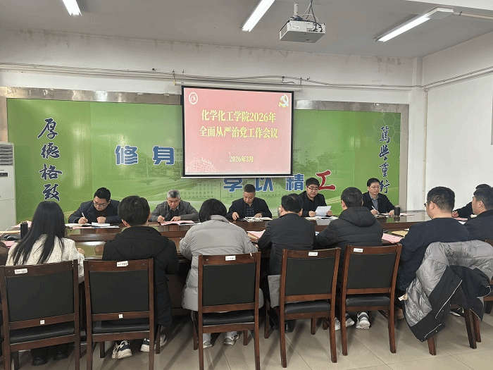 3月23日上午,化学化工学院在学院会议室召开2026年全面从严治党工作会议。学院党政班子成员、党支部书记、责任科室负责人、专业系(教研部、实验中心)主任出席会议。学院党委书记庞辉主持会议。