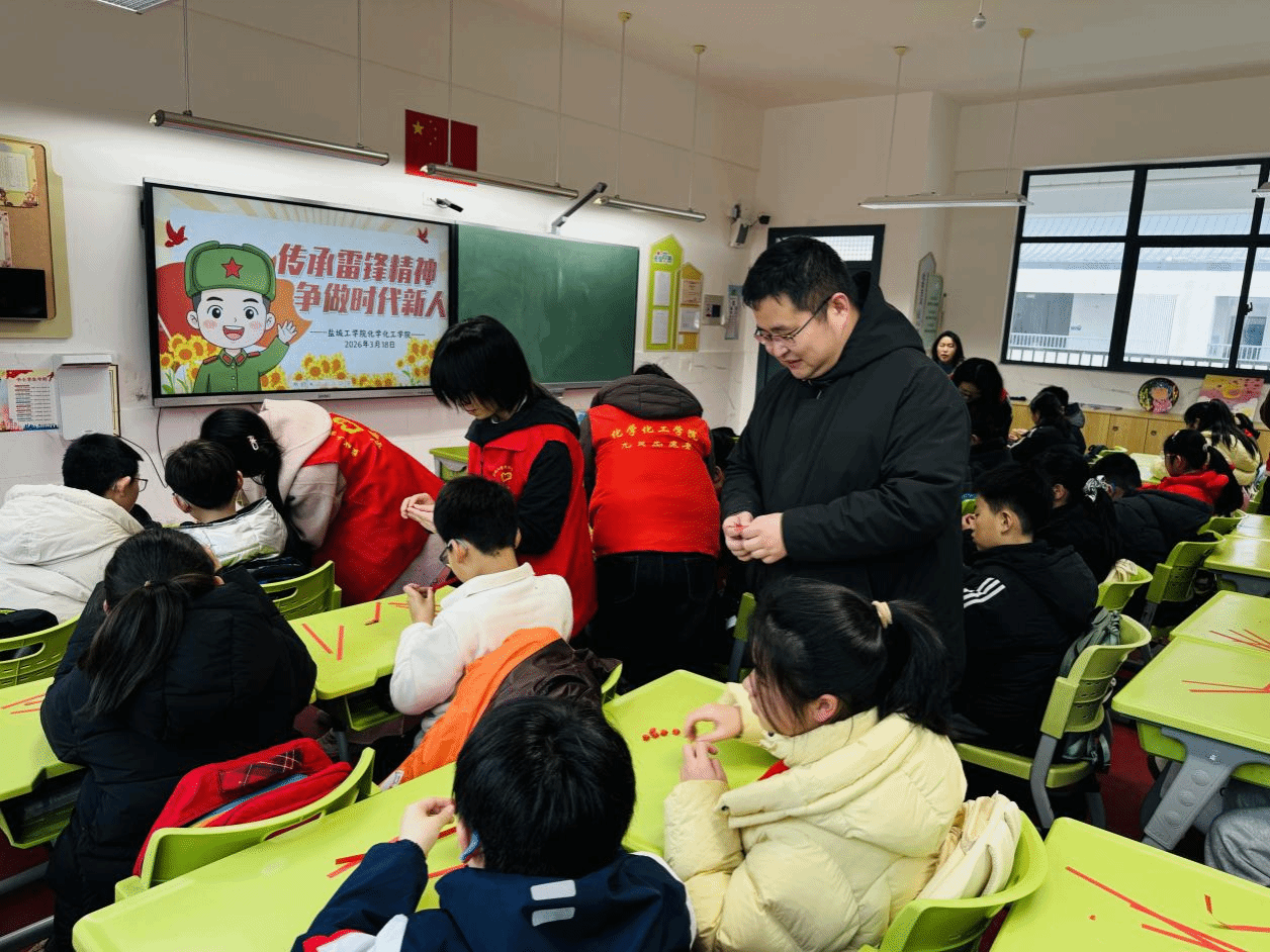 三月春风暖人心,雷锋精神永传承。为深入弘扬“奉献、友爱、互助、进步”的志愿服务精神,引导青年学子以实际行动践行雷锋精神,传递青春温暖。3月18日下午,盐城工学院化学化工学院组织师生党团员志愿者前往盐城市新都路实验小学,开展“赓续雷锋精神,笃行志愿担当”主题教育活动,用爱心与责任为孩子们上了一堂生动的雷锋精神传承课。
