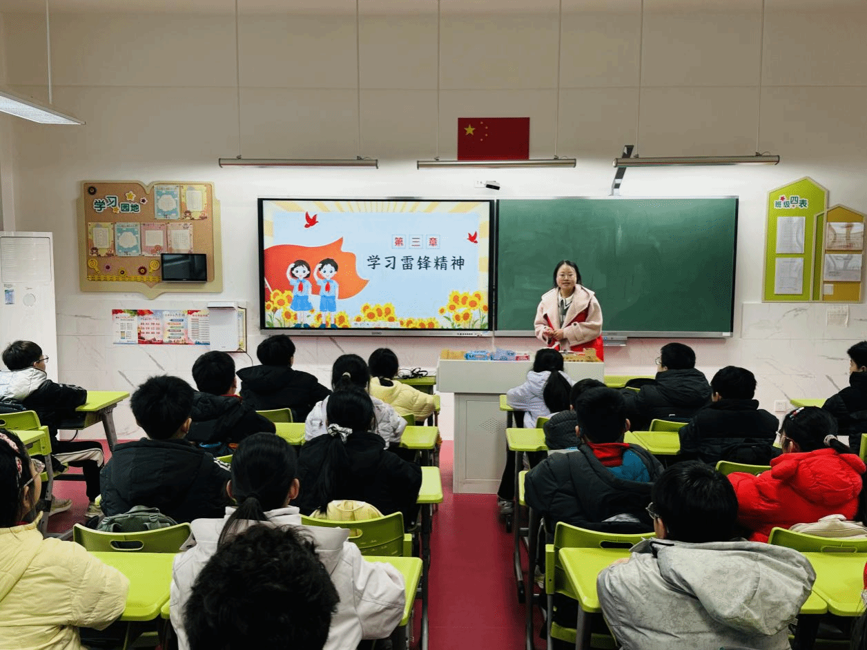 宣讲结束后,活动进入传唱经典环节。志愿者们带领五年级学生共同学唱《学习雷锋好榜样》,逐句教唱、耐心纠正,讲解歌曲背后的故事与情感。“学习雷锋好榜样,忠于革命忠于党……”激昂嘹亮的歌声回荡在教室里,稚嫩而坚定的嗓音,传递着同学们对雷锋同志的敬仰与向雷锋学习的坚定决心,让雷锋精神在歌声中浸润心灵、代代相传。