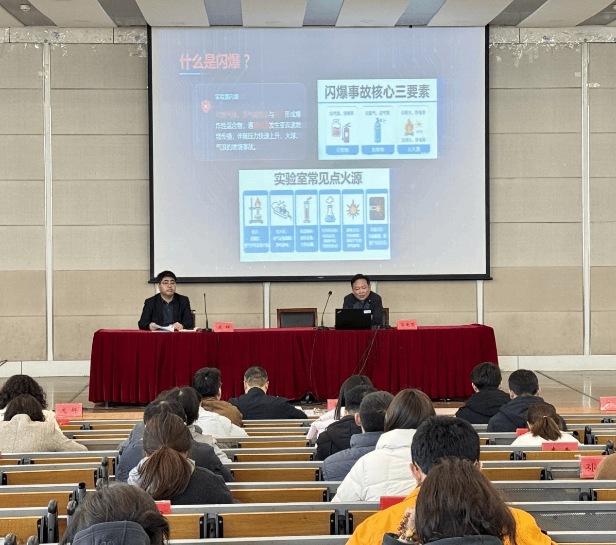 学院实验室中心主任冒爱荣开展实验室闪爆事故专项警示教育培训。培训以近期某高校闪爆事故为警示,结合学院学科专业特点,深入剖析了事故直接原因和安全管理漏洞,进一步明确了教师的安全职责,系统讲解了实验室风险评估流程与防控要点、实验全过程标准化操作规范、常见实验室事故应急处置要点。培训强调,要深刻吸取事故教训,严格落实全员安全责任,常态化开展监督检查,构建实验室安全长效机制,筑牢实验室安全防线。