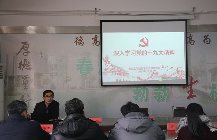 12月27日下午,在北校区教育超市楼2楼化学化工学院会议室,化学化工学院党委书记谢毅敏为学院全体教职工作学习贯彻党的十九大精神宣讲。 谢毅敏从党的十九大的主题和主要成果、习近平新时代中国特色社会主义思想、过去5年的历史性成就和历史性变革、中国特色社会主义进入新时代、我国社会主要矛盾的变化、“两个一百年”奋斗目标的战略部署、我国经济社会发展重大战略部署、坚定不移推进全面从严治党等八个方面进行了详细的阐述。讲座深入浅出、视角新颖,对全面、完整准确理解党的十九大精神具有重要的指导意义。最后,他要求大家深刻把握新时代、新思想、新征程,切实把思想和行动统一到党的十九大精神上来,用习近平新时代中国特色社会主义思想武装头脑、指导实践、推动工作,在党的十九大精神指引下,努力为学院发展贡献力量。