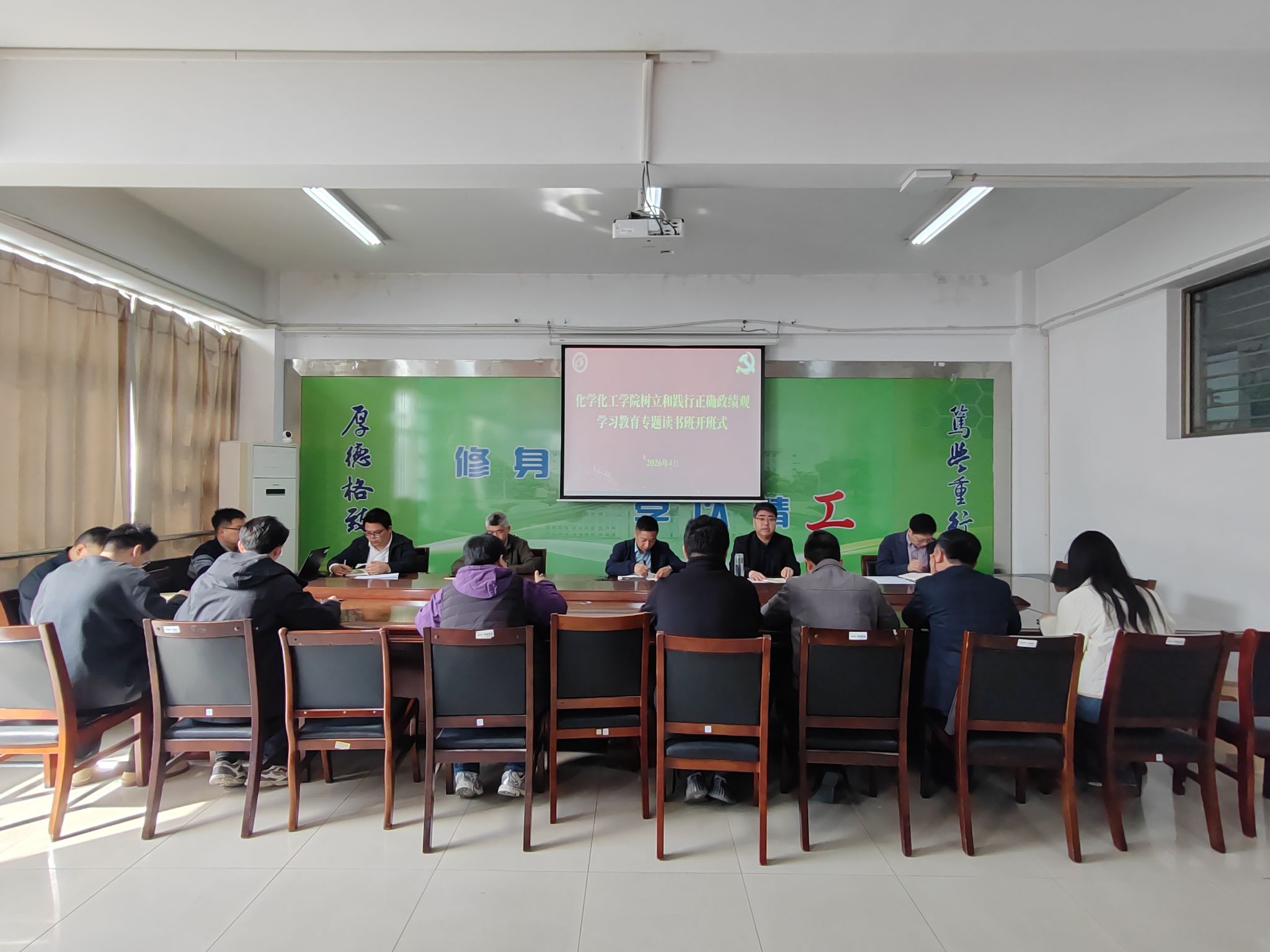 为深入学习贯彻习近平总书记关于树立和践行正确政绩观的重要论述,全面落实校党委部署要求,引导全院党员干部进一步统一思想、提高站位、强化担当,切实把正确政绩观贯穿学院事业发展全过程、各方面,4月8日上午,化学化工学院在学院201会议室举行树立和践行正确政绩观学习教育专题读书班开班式。开班式由学院党委书记庞辉主持,学院党委理论学习中心组全体成员参加。