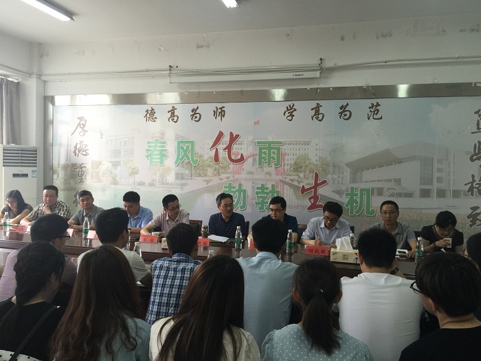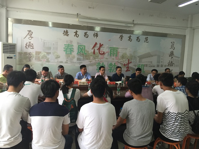 5月31日上午,扬州工业职业技术学院化学工程学院院长钱琛、党委书记丁邦东、副院长龚安华,带领32位“4+0”联合培养本科生来我院进行交流。化学化工学院院长奚新国、党委书记谢毅敏、副院长祁刚、戴勇、党委副书记李刚、化工系主任吴俊、学生科科长赵迎华、副科长李慧等出席座谈会。谢毅敏主持座谈会,奚新国院长热烈欢迎远道而来的各位师生,介绍了我院发展情况特别是近几年考研就业、师资科研等工作亮点。丁邦东书记介绍了扬州工院概况,钱琛院长介绍了化工学院的发展情况。随后,双方进行了深入的交流与探讨。联合培养的学生踊跃提出了许多问题,我院领导和吴俊主任详细地一一解答与指导,鼓励学生努力学习物化、化工原理专业课程,对未来考研和就业规划提出了中肯的建议。