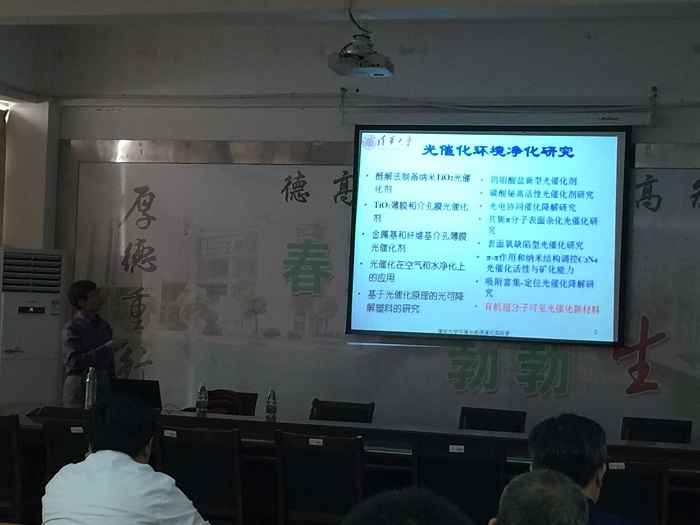 6月8日下午,在北校区教育超市二楼化学化工学院会议室,清华大学教授朱永法应邀来校做学术报告。化学化工学院院长奚新国主持,化学化工学院、材料学院、环境学院、新型环保重点实验室以及分析测试中心等相关老师和研究生参加。
