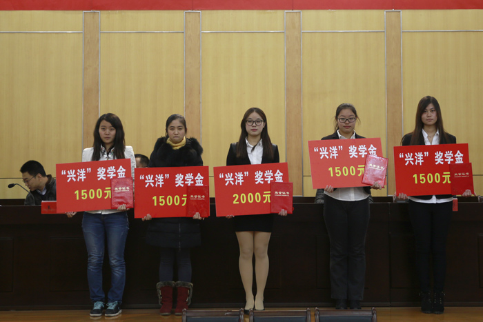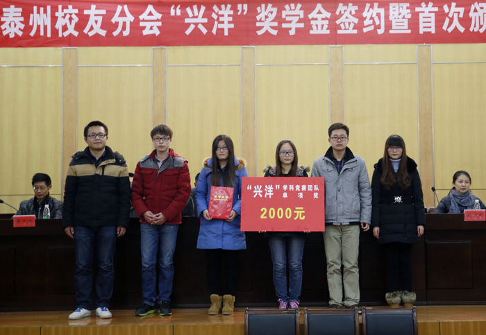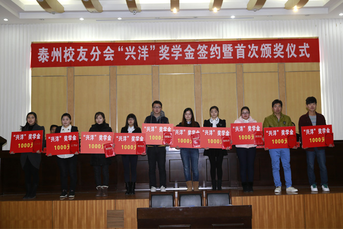 12月21日下午,化生学院2014年泰州校友分会“兴洋”奖学金签约暨首次颁奖仪式在北校区图书馆报告厅举行。