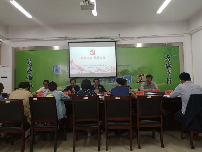 5月15日下午,化学化工学院党委书记谢毅敏在北校区教育超市楼2楼化学化工学院会议室为全院党员教师上了一堂《敬廉崇洁 修德立身》的专题党课。