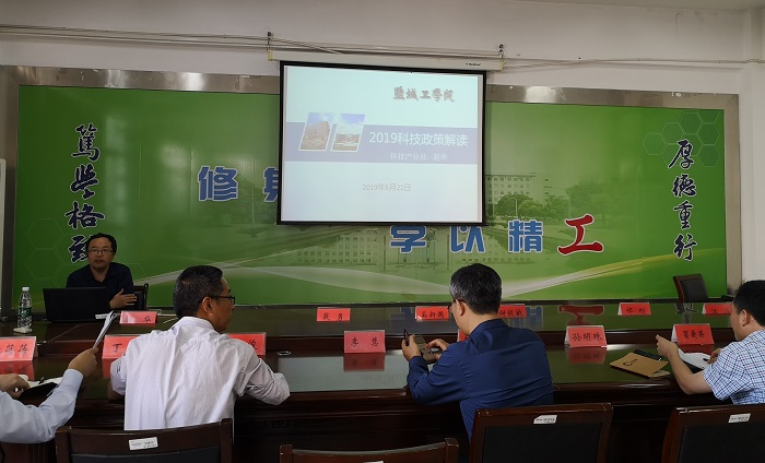 5月22日下午,科技产业处赵华副处长来化工学院作“盐工 2019科技政策解读”专题讲座。化工学院院长奚新国、学院党委书记谢毅敏、学院副院长祁刚、副院长戴勇、学院党委副书记江滔带领全院教师参加本次讲座。赵华副处长就盐城工学院2018-2019年期间发布的科技文件进行了详细的解读。