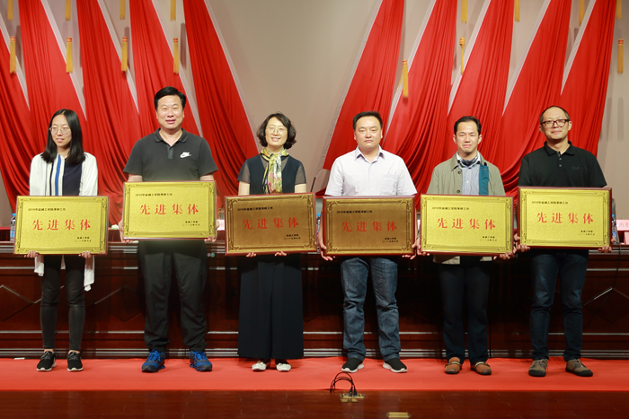 我院党委副书记江滔、学工办主任赵迎华、团委书记李慧分别代表我院上台领取2019年考研先进集体和2018年招生先进集体、就业先进集体奖牌。我院党委书记谢毅敏代表考研工作先进集体发言,介绍了我院考研工作经验。