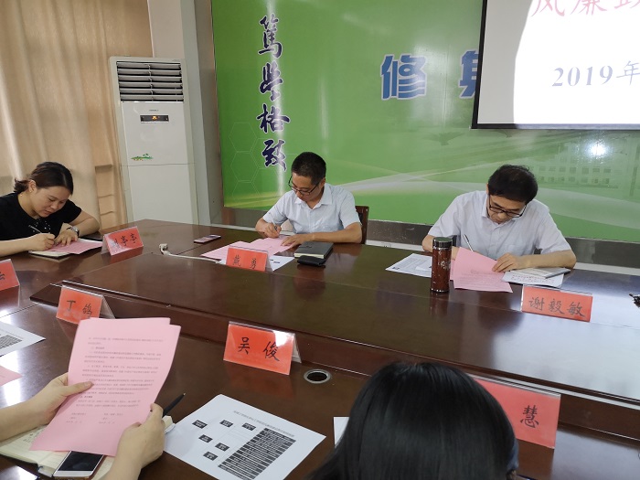学院主要负责人与学院副职领导、学院分管领导与分管的党支部(工会、团委 )、办公室和专业系(教研部、实验中心)负责人分别签订了党风廉政建设责任书。