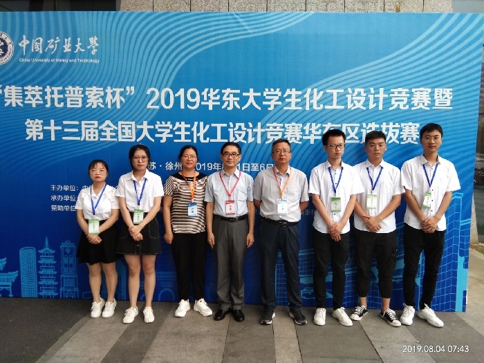 8月3日至6日,“集萃托普索杯”2019华东大学生化工设计竞赛暨第十三届全国大学生化工设计竞赛华东区选拔赛在中国矿业大学举行。由我校化学化工学院赵彬、杨正莹、李丹、施汉生、张苏鹏5位学生组成的“中山化工少先队”,继获得江苏省赛特等奖后,奋勇拼搏,再创佳绩,又获2019华东大学生化工设计竞赛二等奖及全国大学生化工设计竞赛二等奖。化工学院党委书记谢毅敏为领队,董继红、宋孝勇等指导教师全程参加了本次竞赛。
