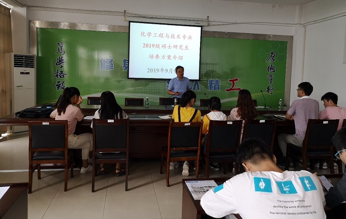 9月9日下午,化学化工学院于学院201会议室召开了2019级硕士研究生培养方案培训会。化学化工学院院长奚新国、研究生秘书曹治及2019级Y化工191班全体研究生参加本次会议,会议由院长奚新国主持。